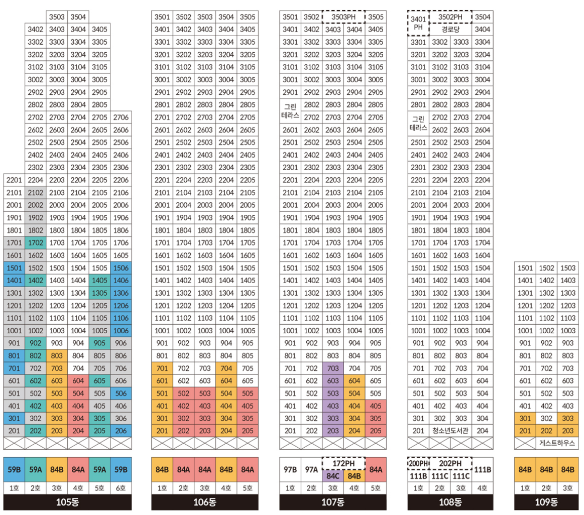 - 타입 : 49㎡, 59㎡, 84㎡, 97㎡, 111㎡, 136㎡, 151㎡, 172㎡, 200㎡, 202㎡, 218㎡